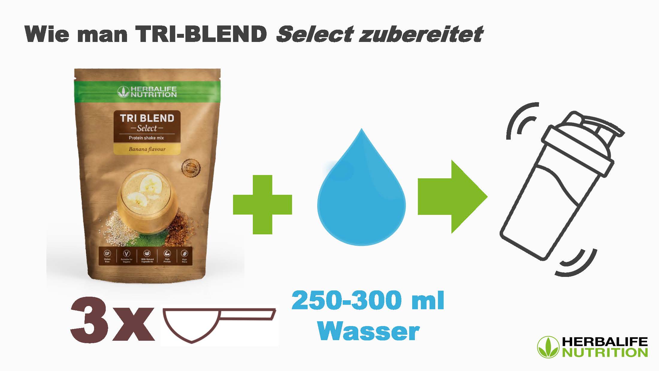 • 2 Messlöffel (26 g) Herbalife Formula 1 Vanille mit 250 ml fettarmer Milch (1,5 %)